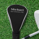 Une élégante couverture de tête de golf noire pour un grand-père golfeur avec son nom monogrammé dans la typographie classique blanche serif et "Best Grand-père Ever" dans la simple typographie blanche moderne.