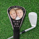 Un amusant couvre-chef de club de golf noir pour une maman de golf avec "This Club Belongs to the Best Mom By Par" en élégante typographie rose serif rose clair et une photo de ses enfants.