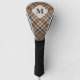 Cette couverture de conducteur de golf présente votre monogramme en gris foncé dans une bannière ornée encadrée de marron et de noir. La bannière est placée au centre d'un arrière - plan motif brun, gris, tan et blanc séduisant. Classy pour lui, et fait un grand cadeau pour le golfeur.