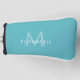 Apportez une touche de personnalité et une élégance intemporelle à votre sac de golf avec cette housse de tête de putter personnalisée verte sarcelle. Conçue pour les amateurs de golf qui apprécient le style raffiné et la protection fiable de leur matériel, cette housse de tête de putter personnalisée présente un monogramme initial gras aux côtés de votre nom en lettrage serif blanc croquant. Le fond vert sarcelle frais ajoute une touche moderne et rafraîchissante, mêlant sophistication et esprit sportif. Que vous vous prépariez pour un tournoi de week-end, que vous cherchiez le cadeau d'anniversaire ou de demoiselle d'honneur parfait, ou que vous ajoutiez une touche personnalisée à l'équipement de votre équipe de golf, cette housse de tête de putter fait mouche. Élégante, fonctionnelle et unique, c'est l'accessoire idéal pour afficher votre identité sur le