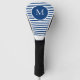 Couvre-tête de golf monogramme à rayures bleues et blanches, avec un design circulaire et une lettre classique blanche personnalisable. Idéal pour ajouter une touche personnalisée à votre jeu de golf.