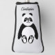 This panda design golf club head cover is an accessory that you slide over the head of a golf club for protection against knocks whilst sitting in your golf bag. Made out of polyester, cotton, and marine vinyl with a choice of different piping colours. You can customise this golf club head cover with any text. You can also change the background colour by clicking on the edit this design button. Should you require any help with customising then contact us through the message link on this page. Panda bear design golf club head cover.