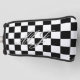 Housse de golf à drapeau à damiers noir et blanc avec des lettres monogrammes.