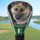 This custom dog photo personalized golf head cover features an editable dog photo with a Best Dog Dad message and a customizable monogram on a hunter green background for a golf gift. You can leave the message as-is or edit to make it say something else. Personalize it with your monogram in the listing editor.
