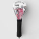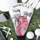This cute modern golf head cover features the top part of a pink golf bag with clubs sticking out, creating a fun and stylish look. The name monogram is curved around the top for a personalized touch, keeping the design simple and chic. The soft watercolor style and pink tones make it perfect for the lady golfer in your life. Ideal as a thoughtful gift for Christmas, birthdays, Mother’s Day, or any special occasion.