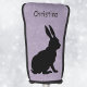 Cette couverture de club de golf personnalisée pour vos putters est un joli violet à motif clair avec un profil latéral d'un lapin assis en silhouette noire. Customisez votre nom avec le modèle.