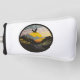 A broder with an eagle flying over a mountain, in the style of contemporary landscape, golden light, black mountain college, fisheye lens, arts and crafts movement, mid-century illustration