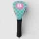 Couvre-club De Golf Teal Quatrefoil Pattern Custom Pink Monogram