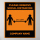 COVID 19 Social Distancing Sign Attention Poster du panneau d'avertissement. Avec le nom de votre société imprimé pour rendre officiel et tenir votre personnel et vos clients informés