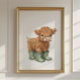 Our charming Highland Cow Print showcase an adorable watercolor baby highland cow in sage green rain boots, bringing the perfect blend of rustic charm and whimsy to any space. Designed for versatility, this print makes a delightful addition to both nursery decor and farmhouse mudroom wall art and makes an adorable gender neutral farm baby shower gift!
