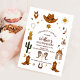 Saddle up for fun with this Western cowboy birthday party invitation, perfect for little wranglers and rodeo fans. Featuring classic Wild West illustrations like cowboy hats, boots, lassos, cacti, and sheriff badges, this rustic design sets the tone for a playful celebration. Ideal for kids birthdays, it combines charming Western graphics with easy-to-read event details. A great choice for parents planning a cowboy-themed party, this invitation adds authentic country flair and makes guests excited to join the adventure.