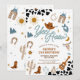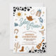 Saddle up for a rootin tootin celebration with this western cowboy birthday party invitation! Featuring classic western icons like cowboy hats, boots, lassos, cacti, and a sheriffs badge against a bold cow print background, this design sets the perfect tone for a fun-filled day. Ideal for kids birthdays, especially little cowboys and cowgirls, this invitation blends rustic charm with playful details to delight guests. Personalize with your party details and make your childs birthday unforgettable with this unique cowboy-themed invite.