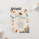 Saddle up for a rootin tootin celebration with this western cowboy birthday party invitation! Featuring playful illustrations like cowboy hats, boots, lassos, cacti, and a sheriff badge, this design sets the perfect tone for a fun-filled event. The bold cow print border and colorful text make it eye-catching and festive, while the rustic theme adds charm for little wranglers. Ideal for kids birthdays, this invitation is customizable with your party details and sure to delight guests.