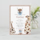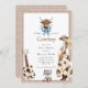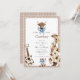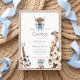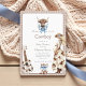 Célébrez l'arrivée prochaine de votre petit cowboy avec cette invitation de baby shower de charme. Doté d'une vache fantaisiste aux fleurs bleues délicates et d'un casquette de cowboy sucré, ce design reflète un style occidental rustique mais élégant. L'invitation affiche en évidence "Un petit cowboy est attendu !" ainsi que l'espace pour le nom de la future maman, les détails de l'événement et un code QR pour les RSVP. Parfait pour un baby shower rustique ou à thème cowboy, cette invitation donne un ton chaleureux et accueillant à votre célébration spéciale.
