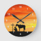 Silhouette de prière Cowboy avec une horloge murale de coucher de soleil