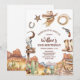 Saddle up for a fun-filled celebration with this Western cowboy birthday party invitation! Featuring rustic desert scenery, cowboy boots, hat, sheriff badge, rope, wagon wheel, and cacti, this design perfectly sets the tone for a rodeo-inspired gathering. Ideal for kids birthdays, this invitation blends playful charm with authentic Wild West style. Personalize easily with your party details and make your little ones special day unforgettable.