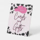 Ajoutez une touche de charme de cowgirl à votre douche de mariée avec ce panneau de table "Cartes & Cadeaux" de notre collection Last Rodeo ! Avec un thème rose western amusant avec des bottes, une impression de vache et des vibrations de rodéo, ce panneau est parfait pour indiquer aux invités où laisser leurs cartes et cadeaux. Idéal pour une fête de bachelorette, une douche de mariée ou un dernier adieu en fête !