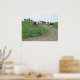 Cows in a Dutch Landscape Photo Poster. Dutch Frisian Holstein cattle walking and grazing in a rural area in Holland, The Netherlands with a path/ road and a fence with grass land pasture. One cow is looking at You! A great cows farm animals photography poster for the cow and rural nature lover or for the traveler to Holland as a photo print souvenir to hang on Your living room wall at home or working area in the office. Order and buy this dairy farmer's photo print framed for a truly luxurious and special rural scene on Your wall. This cows poster is fully customizable! Add and personalize with Your own texts and images!