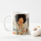 This cozy AI-illustrated mug features a cheerful girl in a bright pajama enjoying her coffee beside a vintage espresso machine — a perfect scene of home warmth and creative energy.