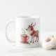 Warm up your winter mornings with this absolutely charming Cozy Reindeer mug! This delightful watercolor illustration features a friendly reindeer bundled up in festive red earmuffs and a patterned scarf, standing next to a steaming mug of hot cocoa topped with marshmallows and cinnamon.