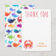 Crabe sous la mer Poisson arc-en-ciel Carte de remerciement personnalisée pour anniversaire et baby shower. Coordonne avec d'autres fournitures de fête sous-marines à thème arc-en-ciel. Idéal pour les anniversaires ou les baby showers. www.SamAnnDesigns.com