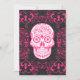 Crâne à sucre rose et noir chaud et Grunge gothique Rose qui est idéal pour le Jour des Morts ou Halloween ou toute personne qui aime crâne ou goth. L'arrière - plan est un motif subtil noir et gris damassé. Embelli de roses roses roses, de fleurs et de tourbillons avec un crâne de sucre rose et blanc au milieu.