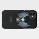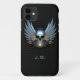 Crâne à ailes chromées bleu sur arrière - plan nid d'abeille avec type personnalisable.