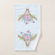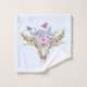 Serviette de bain sertie d'une arrière - plan couleur pastel turquoise. Un crâne animal chic boho avec un bouquet floral sur la tête et des petits papillons qui fleurissent.