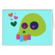 Cette illustration de crâne coloré et funky présente un mignon crâne de dessin animé vert avec des coeurs flottants et des dents rose, orange, violet et bleu ! Cette illustration d'art vectoriel indie est le cadeau parfait à acheter pour toute personne ayant l'amour pour une oeuvre d'art éffrayante mignonne et légèrement sombre mais brillante et vibrante!