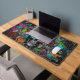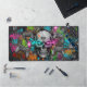Cette image est une œuvre d'art numérique de style street art et gaming, conçue pour un tapis de souris de grand format (deskmat).