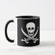 Cette tasse peignée en noir et blanc a l'image d'un crâne de pirate des deux côtés de la tasse. Customisez cet objet ou achetez tel quel. Image stock all-free-download.com