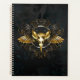 Dessin artistique, symétrique, composition noire et or, ailes d'oiseaux, doré, crâne d'oiseau décoré de motif doré sur arrière - plan sombre, texturé.Style gothique