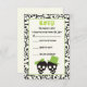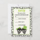 Elégant crâne Halloween carte RSVP mariage vert, avec un couple de crâne noir marié et marié sur l'ivoire arrière - plan et une bordure motif crâne. Le marié porte un casquette vert et la mariée un arc vert.