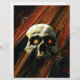 Un crâne malsain avec des prises de vue brillantes et un arrière - plan sombre avec des rayures d'orange, de marron et de noir. Joyeux Halloween, mortels.