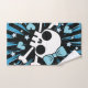 Crâne mignon et os croisés avec arc entouré de coeurs et d'étoiles dans les teintes de bleu.