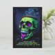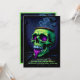 Cette invitation gothique à la fête d'Halloween, personnalisable, présente un design spectaculaire de crâne vert néon avec des accents violets, des chauves-souris et des toiles d'araignée sur le côté sombre. Le dos gras poursuit le thème avec un cadre vert néon frappant et des champs de texte entièrement modifiables pour les détails de votre parti, les informations RSVP et un monogramme ou initiales en option. Le contraste de couleur noir et vert crée un look hantant mais élégant, parfait pour créer l'ambiance d'une fête sombre et éffrayante. OEuvre d'art assistée par l'IA créée avec une attention particulière aux détails pour une ambiance gothique saisonnière unique. Je peux gagner une petite commission si vous achetez par mon lien.