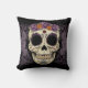 Beau jour du crâne mort de sucre entouré par les roses pourpres. Changez la couleur d'arrière - plan, ou ajoutez le texte pour personnaliser ce coussin. Regarde grand sur le pourpre foncé aussi !