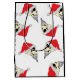 Ho Ho HOLY fume ! Est-ce un crâne avec un chapeau de Père Noël et une chèvre sur ce sac cadeau ? Tu paries que c'est ton traîneau ! Ce sac cadeau de vacances impressionnant et pointu présente des crânes de Noël sur un arrière - plan blanc aux détails noirs.