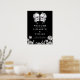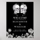 Ce panneau d'accueil mariage aux crânes gothiques noirs et blancs peut être personnalisé avec vos informations dans la typographie moderne. Conçu par Thisisnotme©