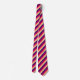 A tie with an attractive 45 degree color stripe design in shades of blue, maroon, red, pink and cream