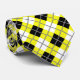 Une cravate à motifs de losanges renversante de motif dans jaune, noir au néon, le blanc et le gris.