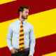 Un marron unique et une cravate rayée dorée avec des rayures épaisses. Une grande cravate rayée diagonale pour quand vous vous sentez aventureux et quand vous voulez vous démarquer de la foule.
