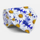 Cravate dans une aquarelle motif de marguerites blanches aux centres jaunes dorés, sur un arrière - plan dans les tons bleu denim