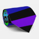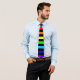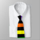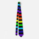 Une cravate multicolore avec alternance arc-en-ciel et bandes horizontales noires.