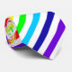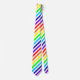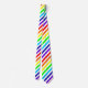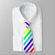 Une cravate multicolore avec alternance arc-en-ciel et bandes diagonales blanches. Les couleurs de la bande arc-en-ciel sont violet, indigo, bleu, vert, jaune, orange et rouge.