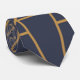 Cette cravate a un design art déco de diamants et de triangles en or sur un champ de bleu.