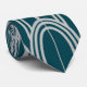 This tie has a design made of domes and vertical lines in silver on a field of blue.
