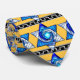 La cravate fraîche comporte l'art déco de Jewbilee inspirée, peinture numérique originale d'une étoile de David en verre souillé dans les gradients du bleu royal flottant au-dessus des rayures d'argent à une frontière principale grecque noire compensée par une base jaune-foncé. Grand cadeau pour Hanoukka, la barre Mitzvah, la fête des pères et plus.
