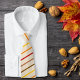 Célébrez l'automne et l'action de grâce avec cette cravate rayée colorée conçue pour coordonner avec notre collection Woodland Thanksgiving Autumn Leaves Collection. La cravate présente des rayures rouges, jaunes oranges et marron sur un arrière - plan clair. Parfait pour tous les mois d'automne, que ce soit au bureau, mariage, les fêtes de famille se réunissent.