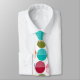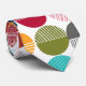 Cette cravate a un design moderne du milieu du siècle de demi-cercles rayés et de demi-cercles solides assemblés sur un champ de blanc.